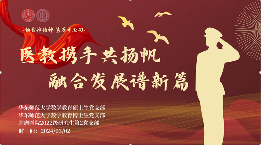 医教携手共扬帆·融合发展谱新篇|亚洲色图 数学教育研究生党支部和复旦大学附属肿瘤医院2022级研究生第2党支部举行共建活动2024年3月2日,亚洲色图 数学教育硕士生党支部、数学教育博士生党支部和复旦大学附属肿瘤医院2022级研究生第2党支部举行“医教携手共扬帆·融合发展谱新篇”支部共建活动。活动伊始,肿瘤医院2022级研究生第2党支...2024-03-02