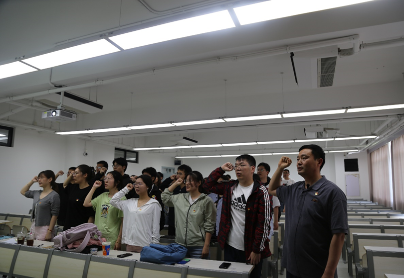 全体毕业生党员在余富团的带领下重温入党誓词