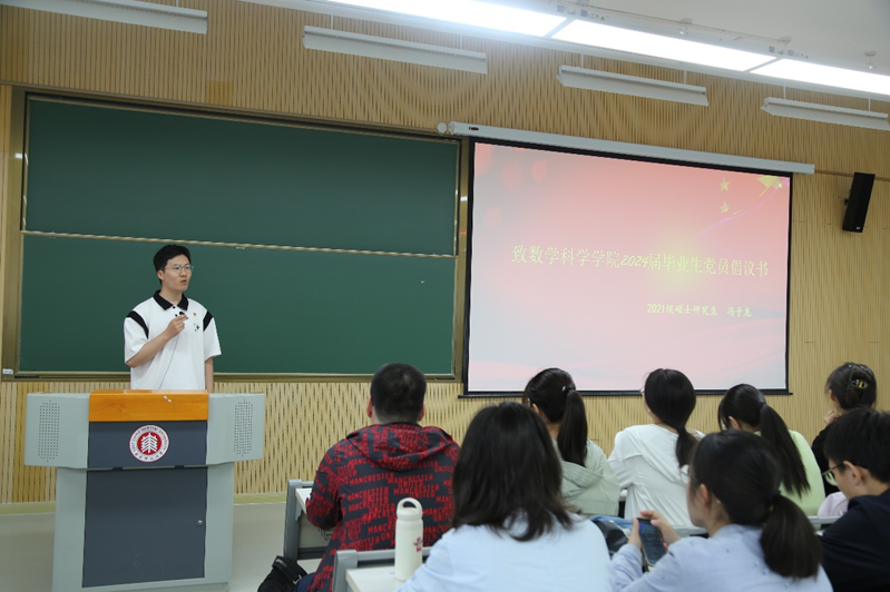 毕业生党员代表冯子龙向2024届全体毕业生党员发出倡议:第一,不忘初心,永葆政治“本色”;第二,正风守纪,提升作风“成色”;第三,饮水思源,夯实校训“底色”;第四,勤奋拼搏,增添担当“亮色”,希望全体毕业生党员在新的岗位上始终秉持初心使命,积极发挥党员的先锋模范作用。
