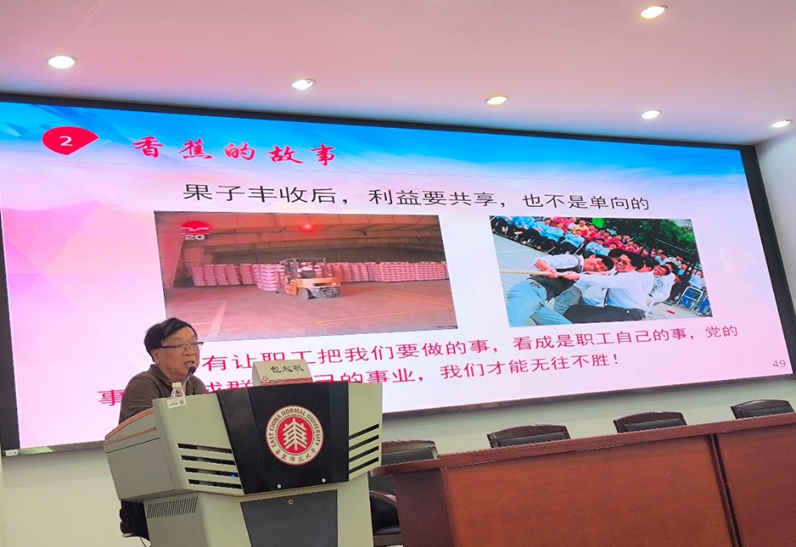 贾挚指出,包起帆同志立足岗位、艰苦奋斗、勇于拼搏、无私奉献、开拓创新的精神品质,与社会主义核心价值观高度契合,希望全体师生党员要牢记初心和使命,认真学习和弘扬社会主义核心价值观,主动担当作为,拿出甘坐“冷板凳”的毅力,心怀为民之心,锲而不舍地坚持科研和创新。最后,贾挚代表学院党委向全体与会师生党员提出三点希望:一是,继续深入学习贯彻习近平总书记在中央党校建校90周年庆祝大会上的重要讲话精神,落实全国党校(行政学院)校长(院长)会议精神和高校党校工作推进会要求。二是,落实党员教育相关工作要求,切实完成全体师生党员参加基本培训的各项具体工作。三是,要把集中学习培训与当前正在进行的党纪学习教育结合起来,与弘扬科学家精神、推进学科发展、促进学院中心工作结合起来,为实现党和国家各项事业高质量发展做出自己的贡献。