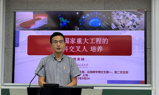 为深化党建与学科建设融合,探索面向国家战略需求的人才培养新路径,9月24日,数学教育党支部与应用数学博士生第一、第二党支部联合开展主题党日活动。本次活动由数学教育党支部书记朱升峰主持,学院党委书记贾挚出席,上海交通大学龚禾林副教授受邀作专题分享。