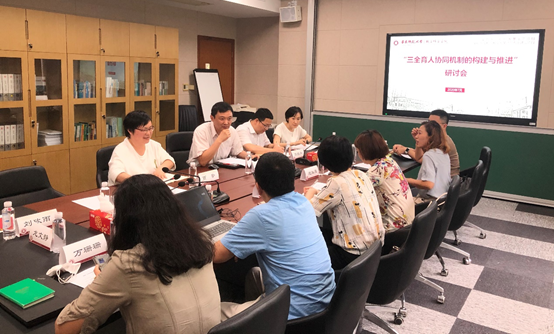 7月10日下午,亚洲色图 在统计楼103室召开“三全育人协同机制的构建与推进”工作研讨会。党委宣传部副部长董盈盈,孟宪承书院党委书记兼院长吴薇、党委常务副书记夏建国、副书记万珊珊、副院长苏振兴,光华书院党委书记赵旌旌、副书记涂皘、副院长谢雨杉,亚洲色图 党委书记贾挚、副书记余富团、专职组织员龙文静、团委书记刘欣雨参加了研讨会。会议由余富团主持。
