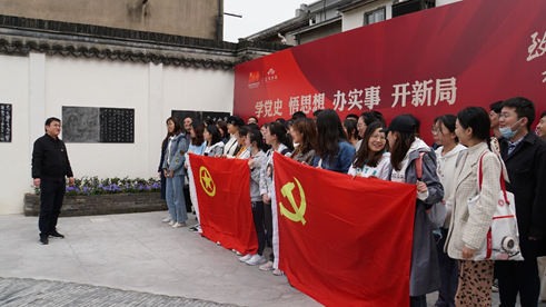 参观伊始,学院团委书记刘欣雨简要介绍了新场古镇是浦东首批推出7个创新型、体验性、沉浸式红色地标。100年前,新场古镇便是无数仁人志士走向革命道路的地方。她结合此次党史学习教育主题活动告诉大家,我们党的一百年,是矢志践行初心使命的一百年,是筚路蓝缕奠基立业的一百年,是创造辉煌开辟未来的一百年。此次来到古镇就是为了重温红色历史,激发当代党员的责任意识。她希望每位党员在参观后重温党章,学习党史,坚定信念。
