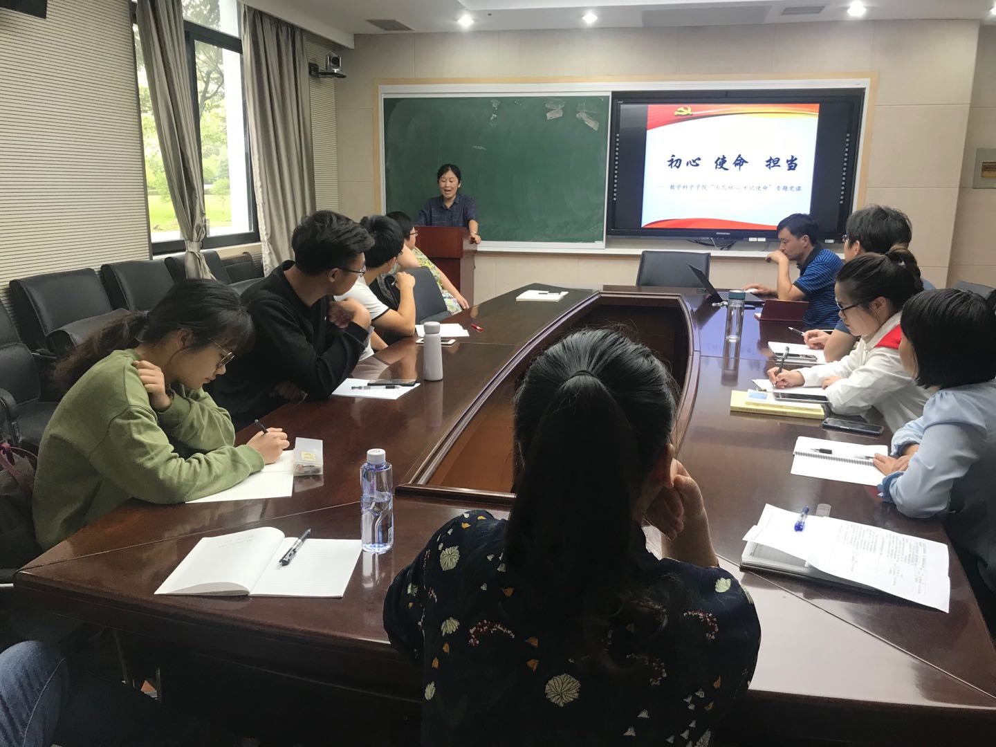 专职辅导员于国妮以“初心 使命 担当”为主题,从“不忘初心、牢记使命”主题教育的意义和要求、具体目标和重点举措、祖国70年的70个第一和榜样的力量为案例以及新中国第一所社会主义师范大学的使命与担当做了内容丰富详实的辅导讲座。