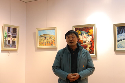 美育工作室负责人尹强向参观师生讲解作品