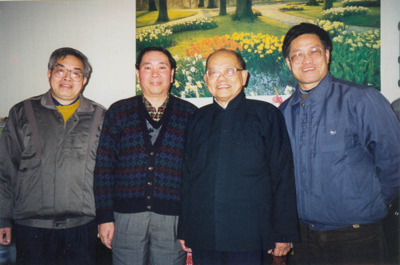 左图是1994年参观东方明珠时与林克伦、陈美廉、邹一心、陈德辉合影;右图是1999年徐元钟返沪时与杨庆中、王继延合影。