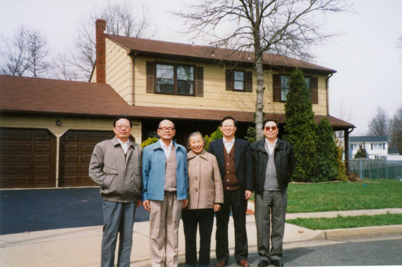 左图是与陈志杰合影于美国普林斯顿高等研究所;右图是与徐元钟、张建中、陈志杰合影于徐元钟在美国的家。(1993年)