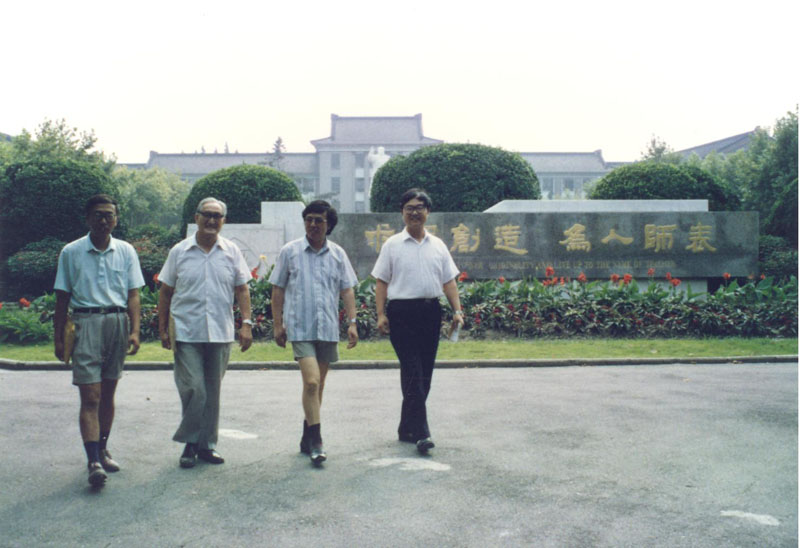 曹先生和学生王建磐、时俭益、叶家琛在师大校园