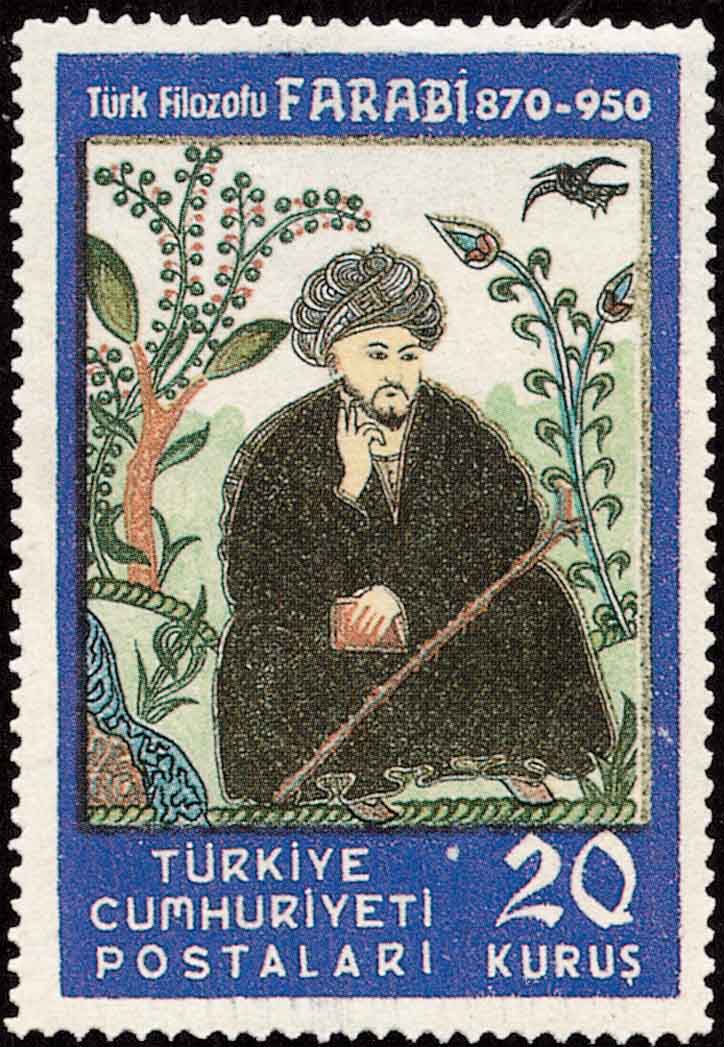 阿拉伯哲学家阿尔·法拉比(a1 Farabi, 公元874-950, 图5是土耳其邮票)对欧几里德《几何原本》的评注是当时很有影响的数学著作.