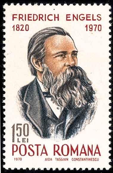 近代德国哲学家马克思(Karl Heinrich Marx, 1818-1883, 图7是德国邮票)和恩格斯(Friedrich Engels, 1820-1895, 图8是罗马尼亚邮票)在创立马克思主义(图9是中国邮票)的同时也学习和研究数学. 为此, 马克思留下他的《数学手稿》. 恩格斯在《反杜林论》中对“数学”作精辟的描述说: 数学是研究现实世界中数量关系和空间形式的科学.