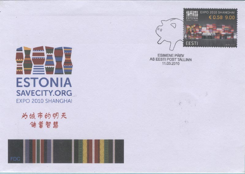 图 38(爱沙尼亚世博纪念邮票、邮戳、首日封)