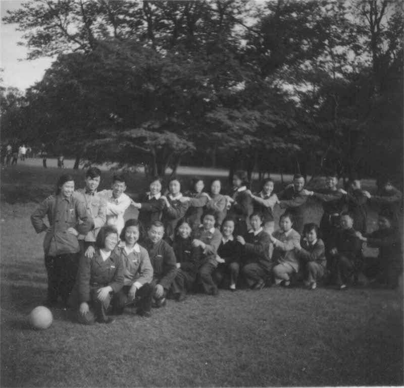 1953年5月4日青年节全体同学在西门堂前草坪上举行团日活动时的留影