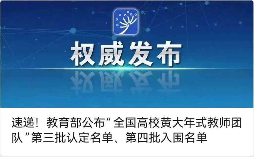 日前,教育部公布第四批“全国高校黄大年式教师团队”入围名单,亚洲色图 创获“师·范”数学与数学教育教师团队成功入围第四批团队!