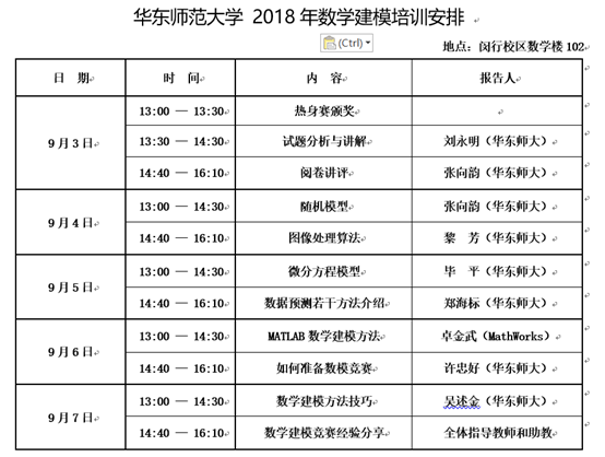 在随后为期五天的培训中,将进行十场讲座和培训活动。欢迎对数学建模感兴趣的同学积极参加。