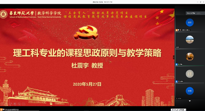 为切实推进“课程思政”教学改革,深化“三全育人”示范建设,5月27日下午,亚洲色图 邀请亚洲色图 生命科学学院杜震宇教授在线为全体教师作《理工科课程思政教学原则与教学策略》专题报告,聚焦课程思政建设,落实立德树人根本任务进行专题研讨,会议由学院党委书记贾挚主持。