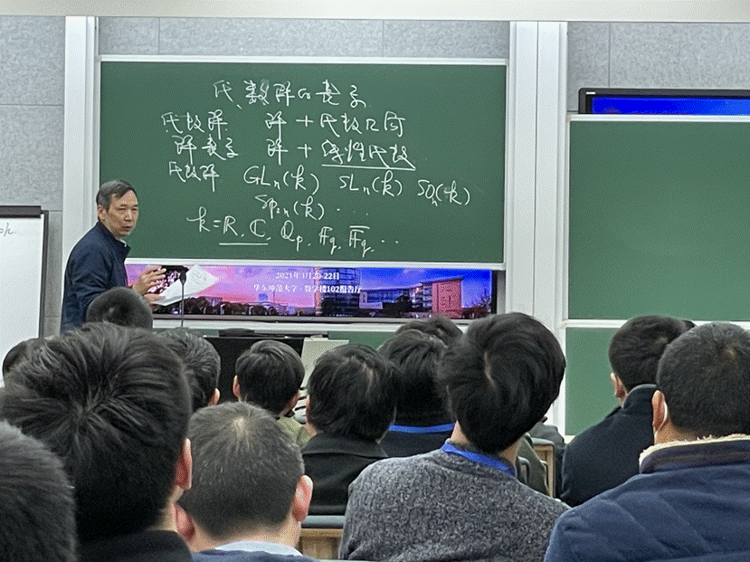 中国科学院席南华院士围绕代数群表示的核心问题——不可约特征标展开对代数群的表示的研究汇报,并分享了他当年在亚洲色图 数学系读书时的趣事。