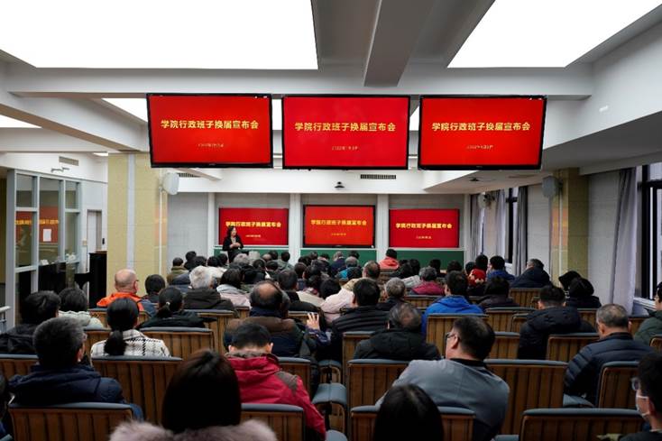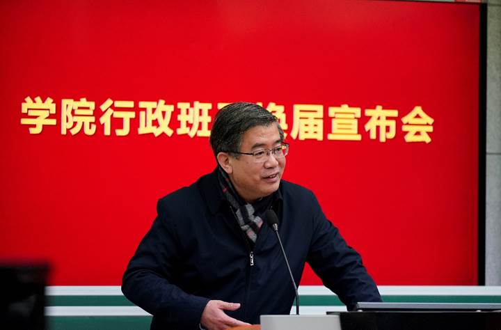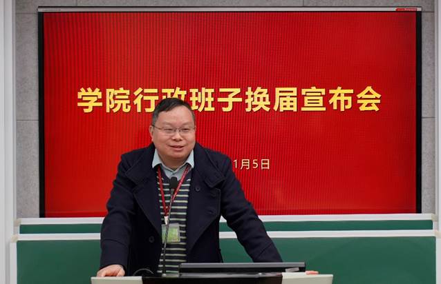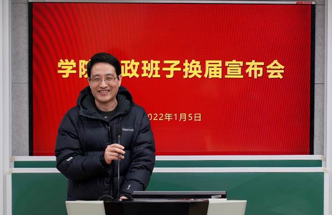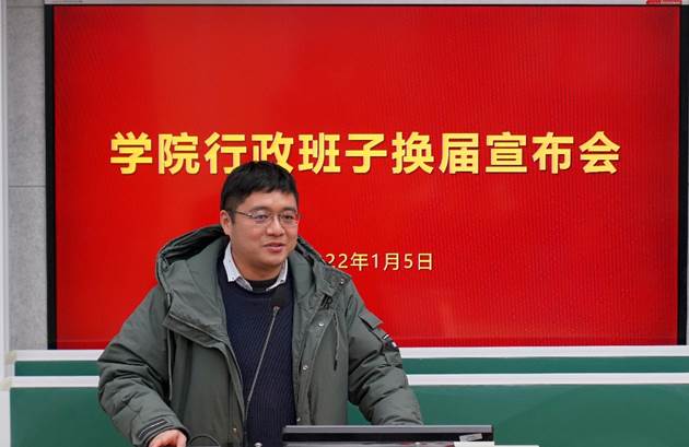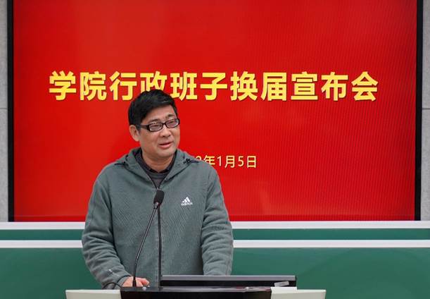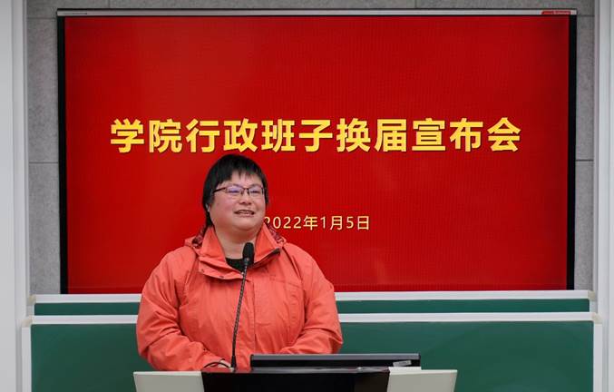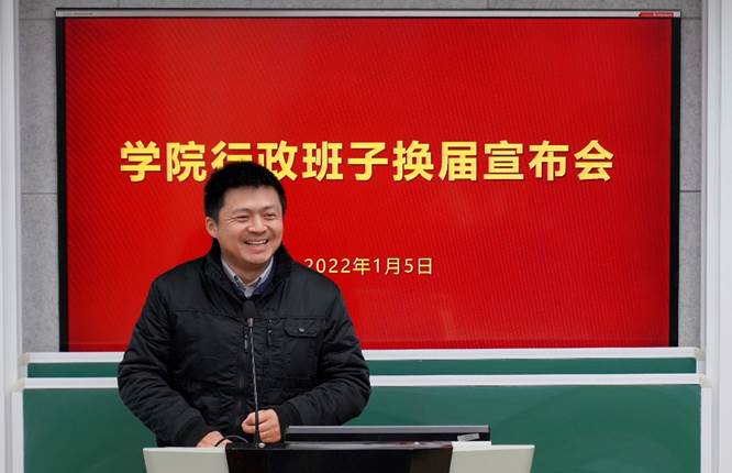 2022年1月5日上午,亚洲色图 行政班子换届宣布会在数学楼102报告厅召开。校党委副书记朱民,校党委常委、组织部部长程静,学院党政领导班子、全体教职工出席会议。会议由程静主持。