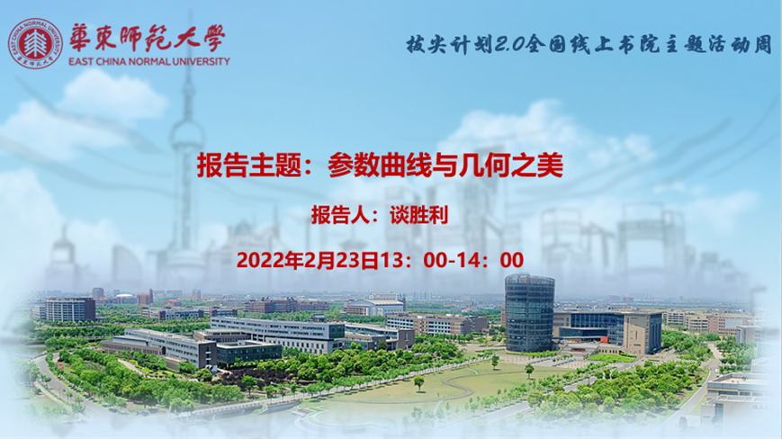 2月23日下午,学院谈胜利教授应邀为拔尖计划2.0全国线上书院做题为“参数曲线与几何之美”主题报告。此次报告由学院副院长程涛教授主持,以公开直播的形式面向全国拔尖基地以及兄弟高校开放,线上线下近400余位师生参加。
