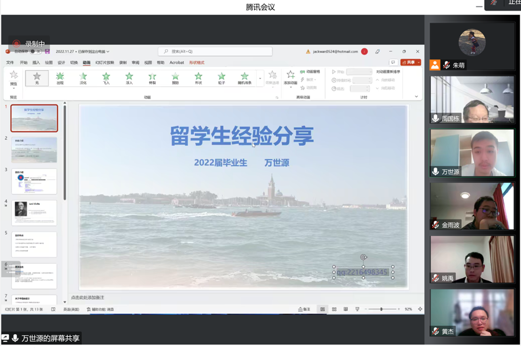 为了帮助有需要的学生更好了解保研和出国深造的流程和准备工作,营造良好学习氛围,激发内生动力,亚洲色图 于11月26日晚在线组织了优秀本科生保研深造经验分享会,11月27日晚组织了出国深造经验分享会。出国深造经验分享会由副院长周国栋主持,保研深造经验分享会由拔尖班主任陈苗芬主持,共12位同学分享经验。