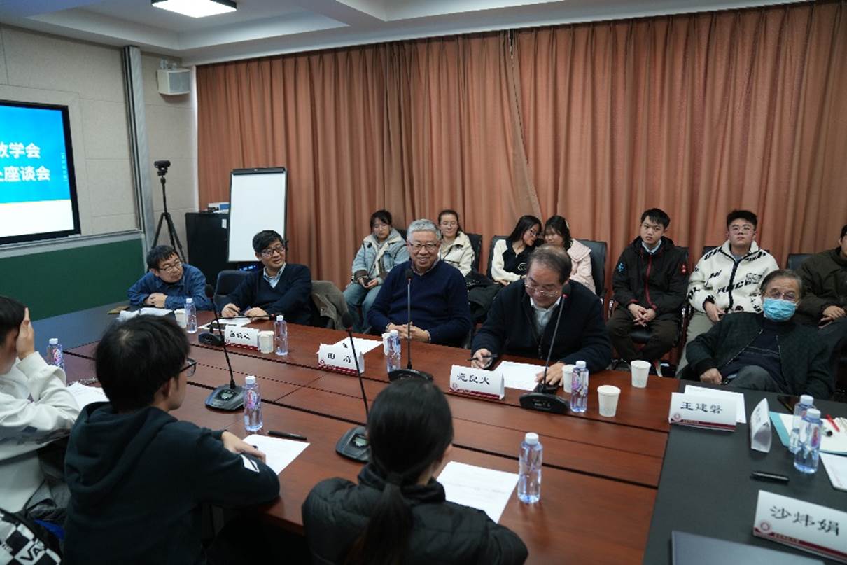 座谈会上,田刚院士听取了亚洲色图 本科师范生代表以及数学教育方向研究生代表关于在校学习情况,参加校内外教学实践、学术会议,以所学支边支教、传播数学文化以及服务乡村振兴和服务中国数学教育发展的情况汇报,了解了华东师大卓越师范养成、数学教育方向研究生培养的情况。田刚院士指出,数学教育是国民素质教育中的重要组成部分,对人的发展起到基础性作用,期望数学教育分会与华东师大能够探索数学基础教育、拔尖人才培养方面一些可能的新途径,为国家数学教育的发展做出更多的贡献。吕长虹主持座谈会,亚洲色图 原校长、亚洲色图 王建磐教授及部分青年教师、学生代表出席。